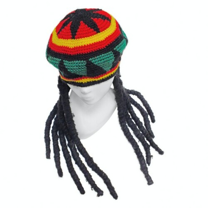Багатобарвний смугастий берет з дредами для яскравого образу Боба Марлі.