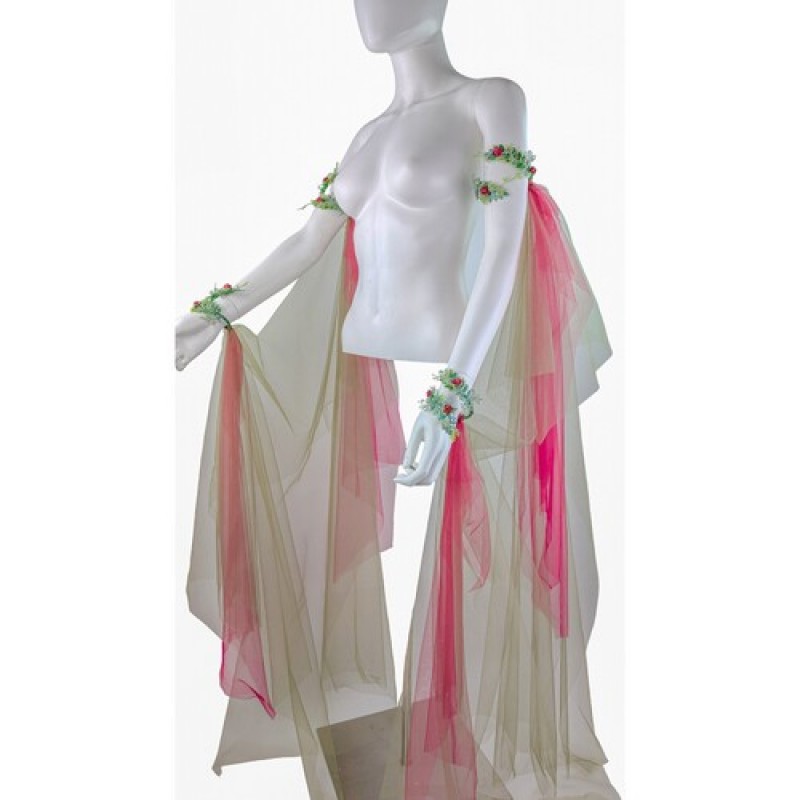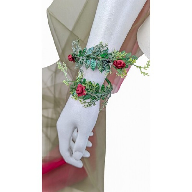 Ефектні прикраси на руки, що складаються з двох браслетів, декорованих гілочками та квіточками, з яскравим фатином.