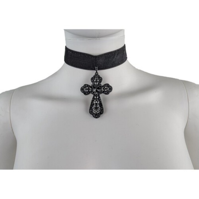 Аксесуар у вигляді великого чорного хреста зі стразами на еластичній стрічці.