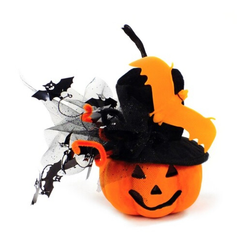 Декор на Хелловін (Хеллоуїн, Halloween) - гарбуз в капелюсі, яким можна прикрасити святковий стіл. Знизу в гарбузі є отвір, в який можна вставити електронну свічку, включивши яку гарбузик світиться, як нічник. На капелюшку гарбуза є кріплення, за яке декор можна підвісити.