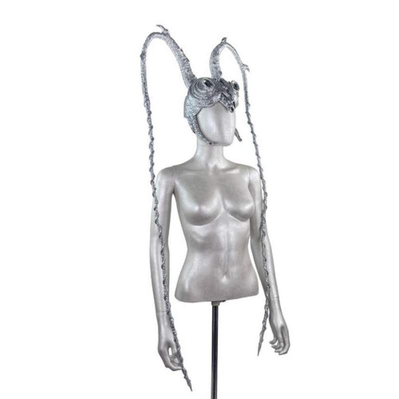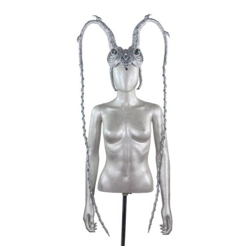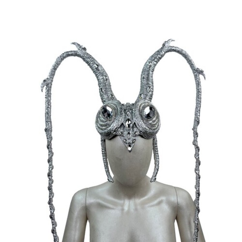 Розкішний головний убір сріблястого кольору, чудово доповнить будь-який карнавальний костюм, образ мухи, жука, комара або іншої комахи.