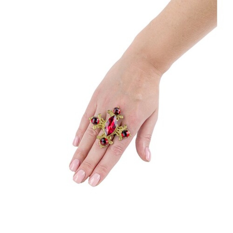 Оригінальна каблучка у незвичайній формі хреста, декорована яскраво червоним камінням.