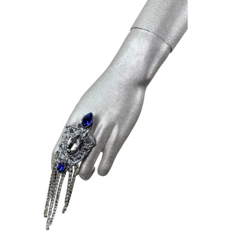 Ефектна ажурна каблучка, декорована блискучим камінням та мерехтливими підвісками із стразової стрічки.