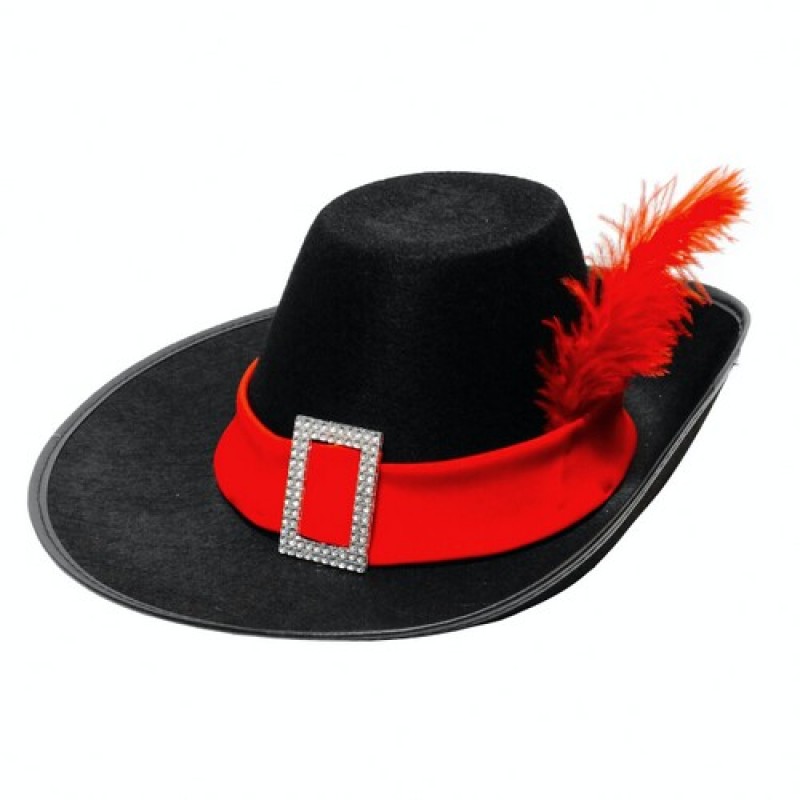 Карнавальний чорний капелюх з широкими полями для карнавальних образів: гардемарин, мушкетер, Кіт у чоботях. З одного боку поля загнуті.
