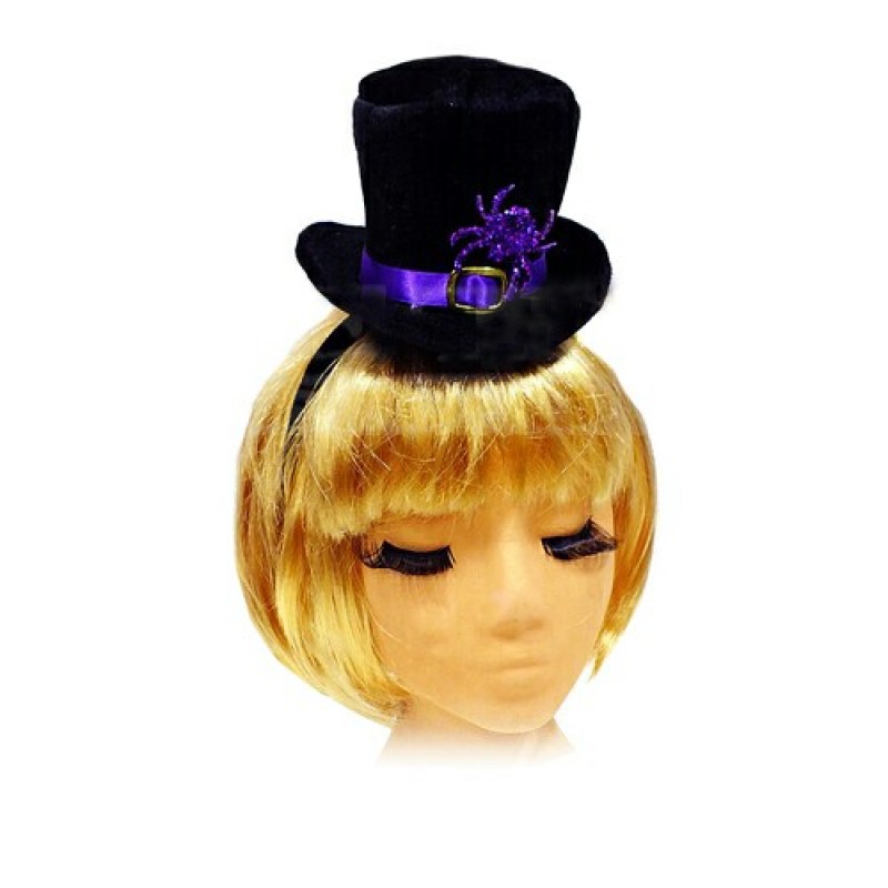 Маленький м'який циліндр на обручі на Хелловін (Halloween). Циліндр прикрашений яскравим павуком.