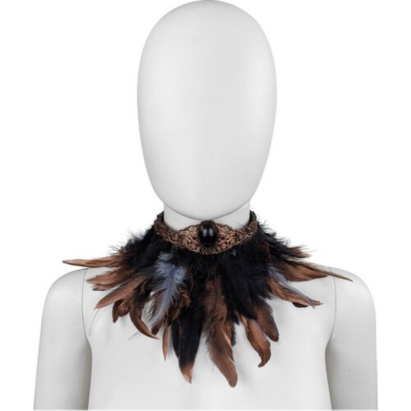 Оригінальний комір з пір'я, декорований металевими вензелями та чорним каменем, відмінний аксесуар для доповнення карнавального образу.