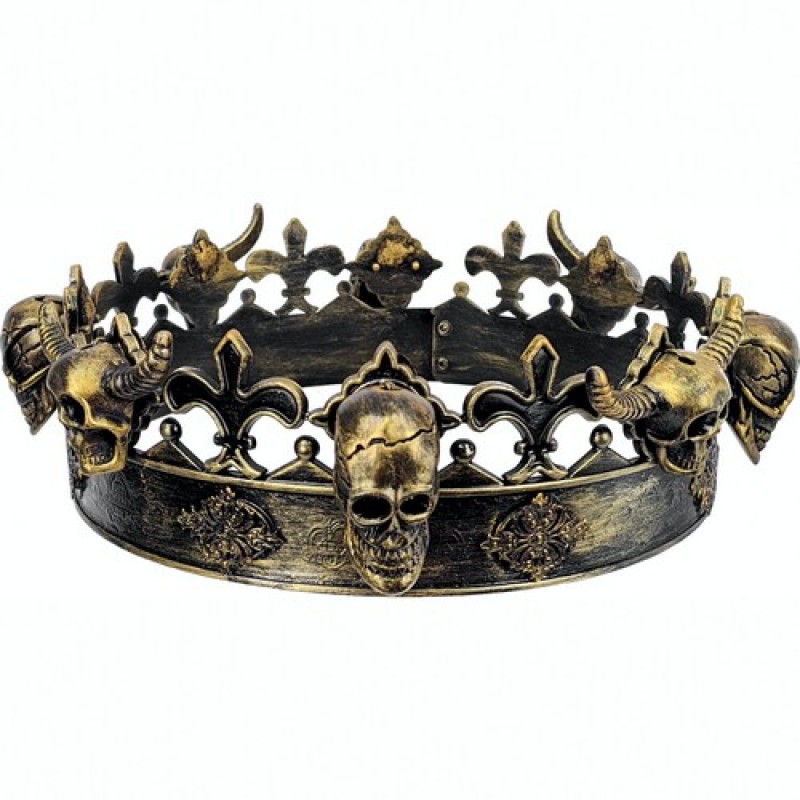 Чудова корона, декорована черепами і вензелями - прекрасний вибір для фотосесії, карнавальної вечірки, для доповнення карнавальних образів: король варварів, король вікінгів, злий король, готичний король, правитель.