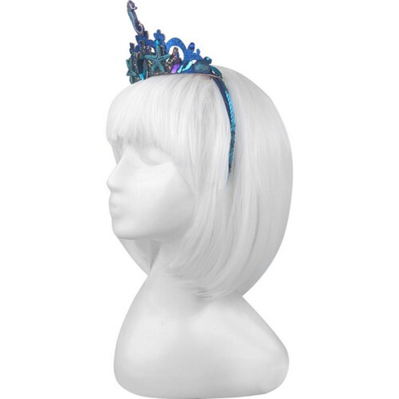 Чудова блискуча корона, прикрашена фігурками (морський коник, морська зірка, морськими мушлями і стразами) - ідеальне рішення для доповнення образу русалочка, рибка, хвиля, море. Цей аксесуар стане прекрасним подарунком Вашій дитині і подарує масу чудових емоцій.