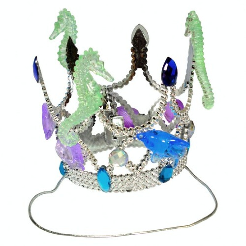 Карнавальна корона на резинці, прикрашена фігурками морських тварин (морський коник, дельфін), для образів: русалочка, рибка, хвиля, море.