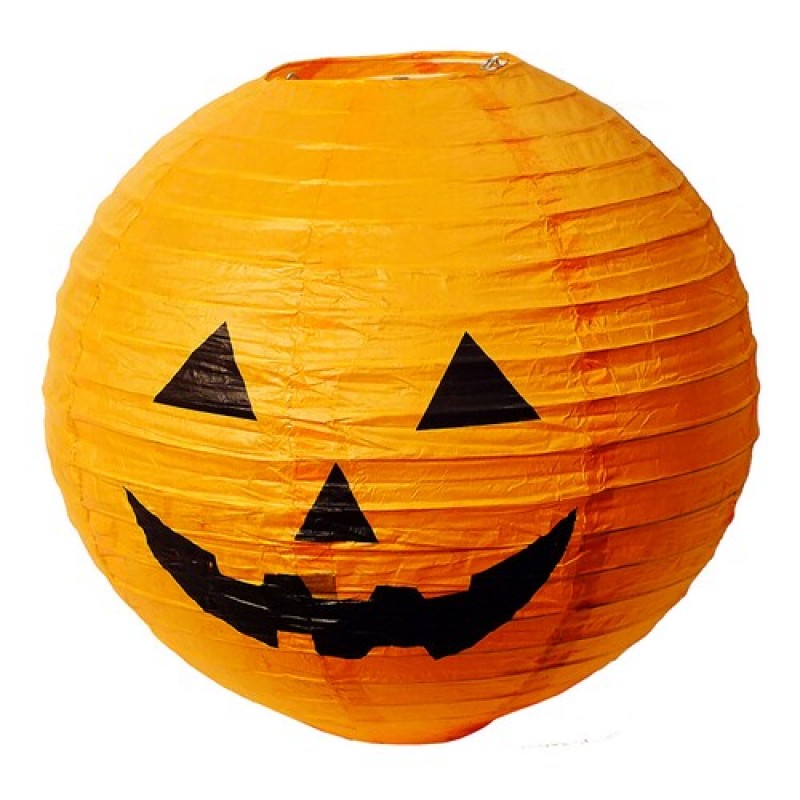 Помаранчевий паперовий підвісний декор ліхтарик у вигляді гарбуза на Хелловін (Halloween).