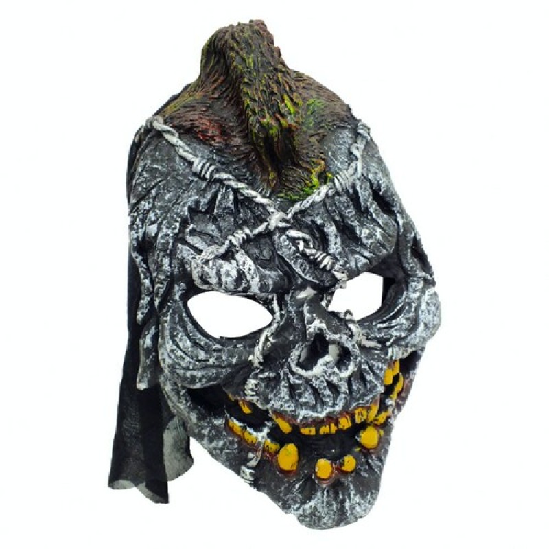 Карнавальна страхітлива маска черепу з ірокезом - відмінний вибір образу в хелловінську ніч.