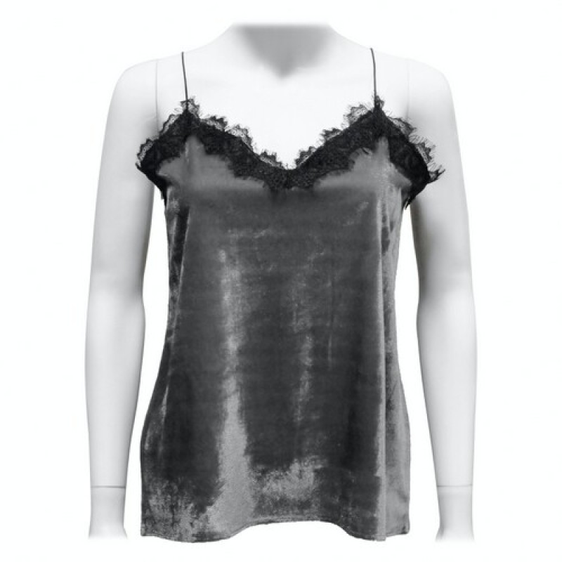 Стильна оксамитова майка з мереживом (топ на тонких бретелях).