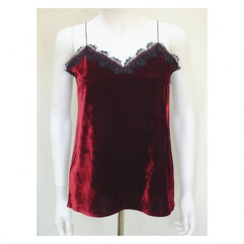 Стильна оксамитова майка з мереживом (топ на тонких бретелях).