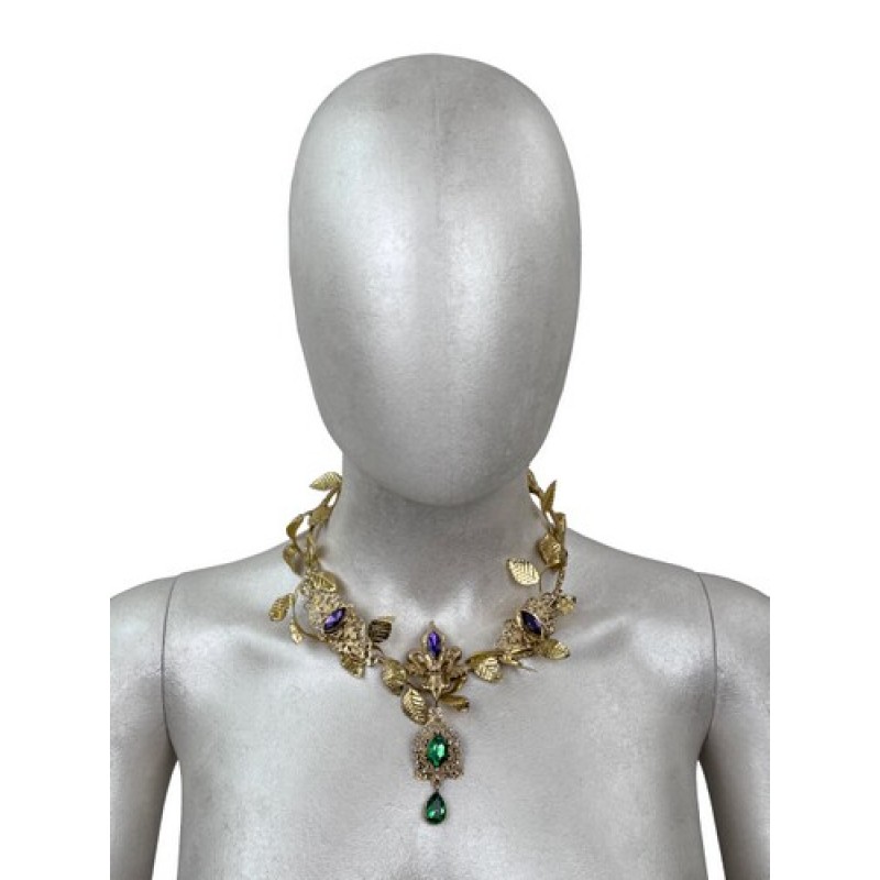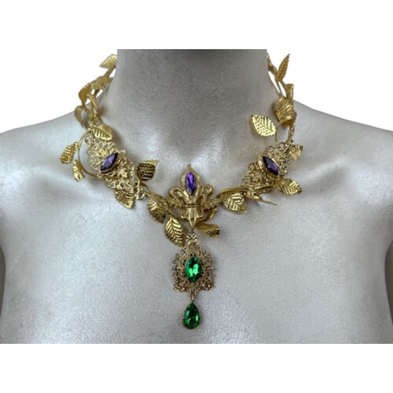 Оригінальне золотисте намисто, прикрашене яскравим камінням та везелями.