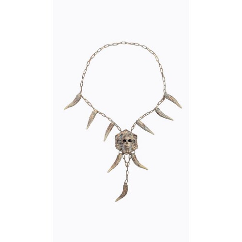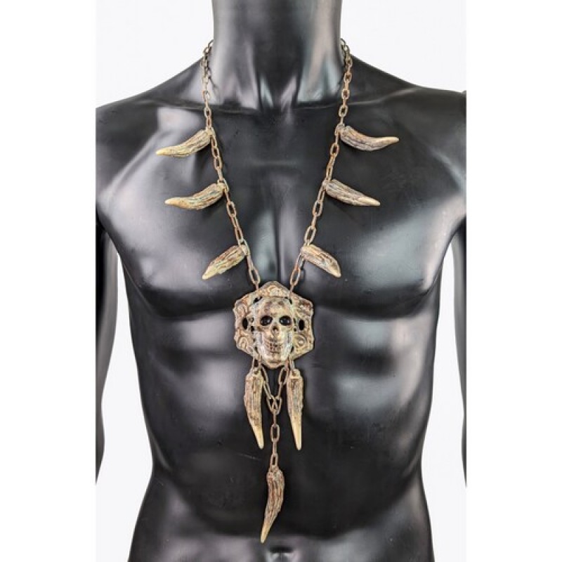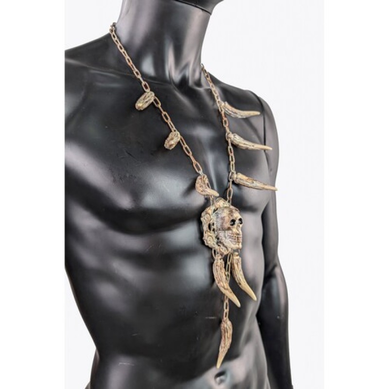 Оригінальне намисто на металевому ланцюгу, декороване іклами та черепом, чудове доповнення шаманського або варваського образу.