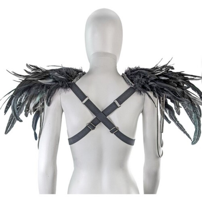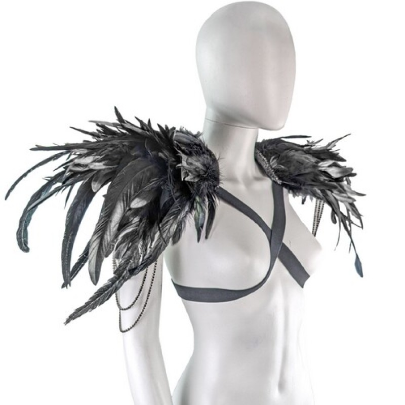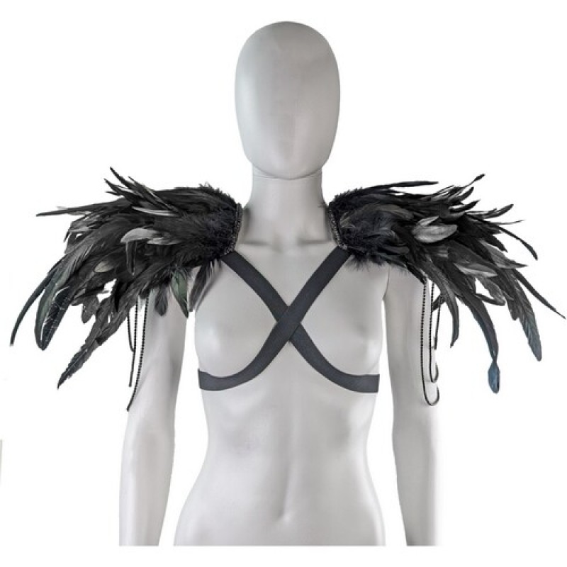 Карнавальний аксесуар у вигляді наплічників (пагонів), декоровані натуральним пір'ям з підвісками з каменів на металевій стрічці.