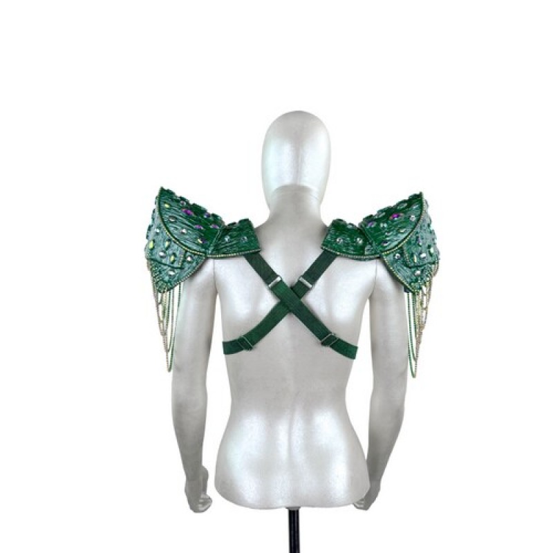 Карнавальний аксесуар у вигляді наплічників (пагонів) з обємною фактурою, прикрашених камінням і витонченими ланцюжками.