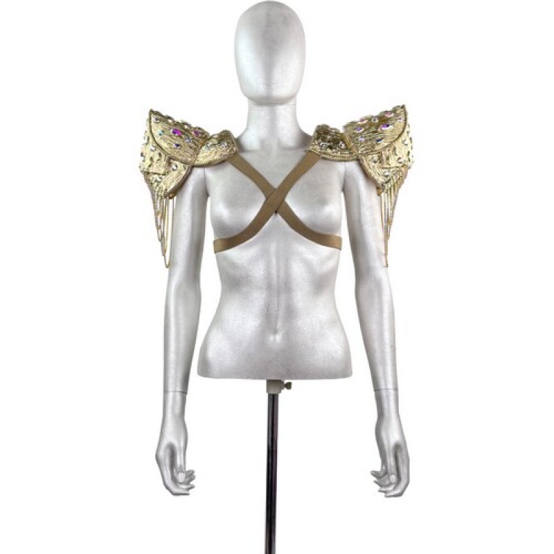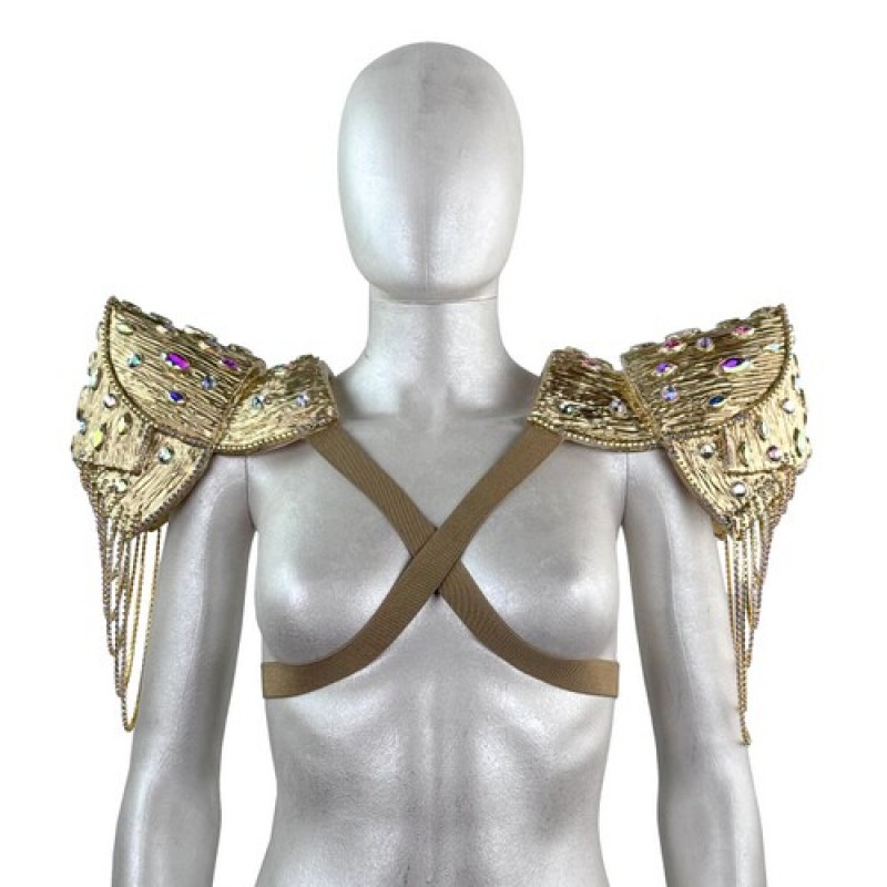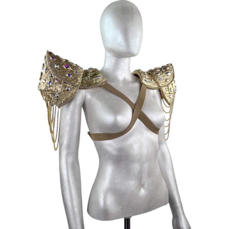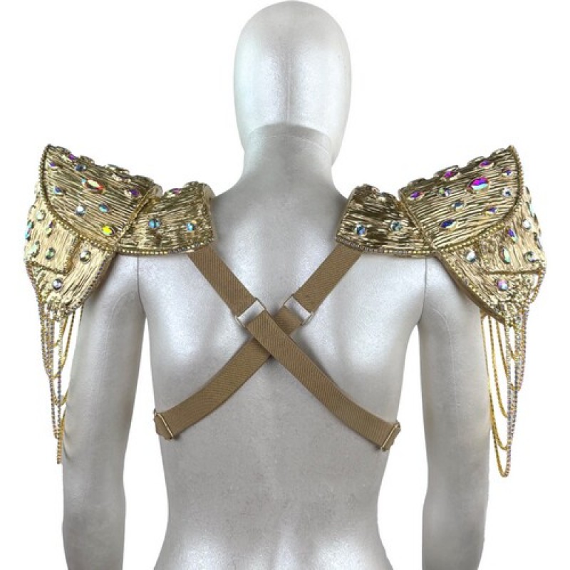 Карнавальний аксесуар у вигляді наплічників (пагонів) з обємною фактурою, прикрашених камінням і витонченими ланцюжками.