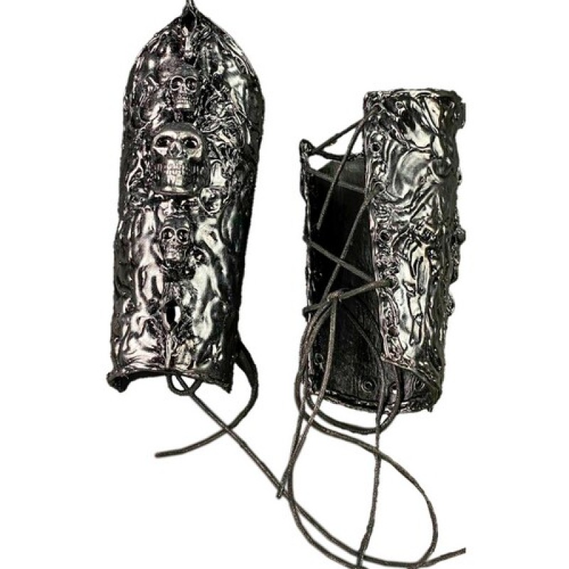 Карнавальний аксесуар у вигляді нарукавника (браслета, наруча), декорований черепами, фіксується за допомогою шнурівки.