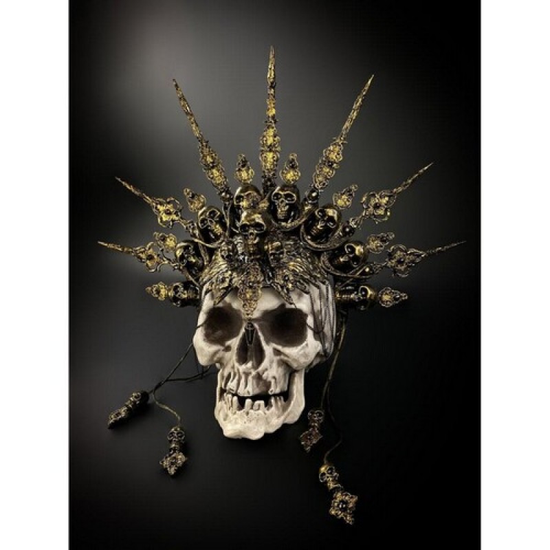 Неймовірно красивий і ефектний готичний головний убір темного золотистого кольору, створений з безлічі деталей, які надійно закріплені.