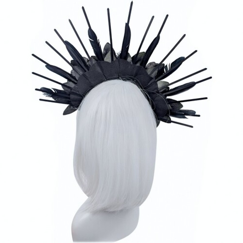 Оригінальний аксесуар у вигляді обруча, декорованого пластиковими променями, квітами, мереживом і пір'ям. Цей головний убір - чудовий вибір для фотосесії, готичної вечірки, для доповнення карнавального образу на Хеллоуїн: зла чаклунка, темна королева, відьма, богиня. Розмір універсальний.