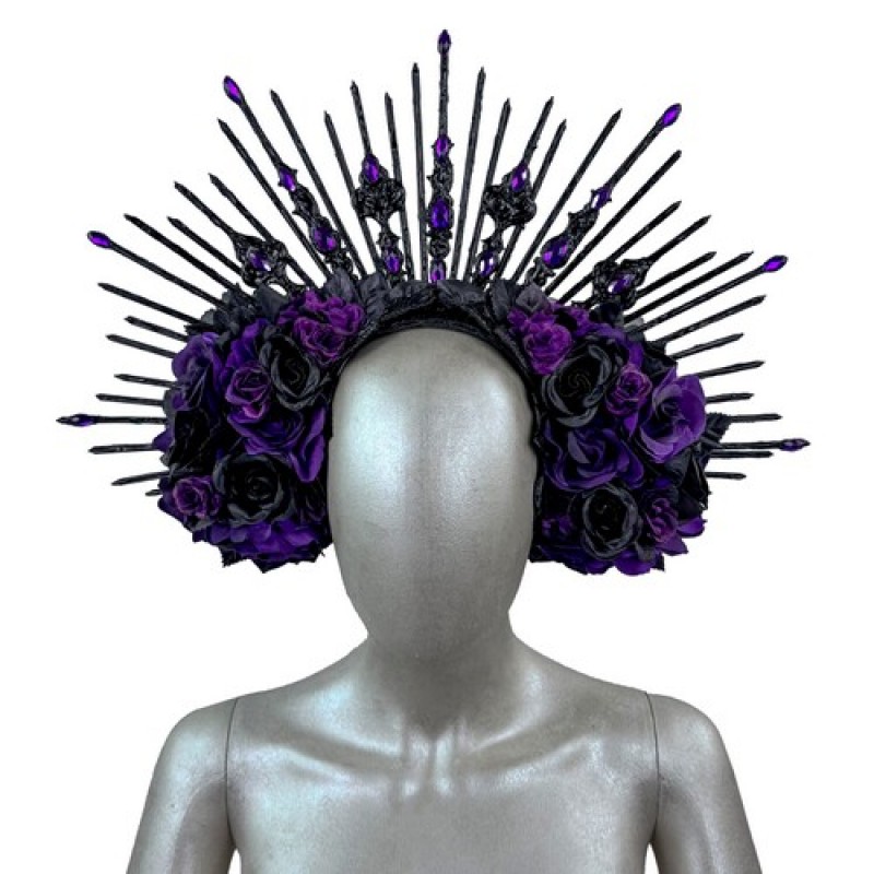 Неймовірний головний убір ручної роботи, прикрашений трояндами, листям, декоративним камінням, металевими вензелями, променями (пластиковими стяжками).