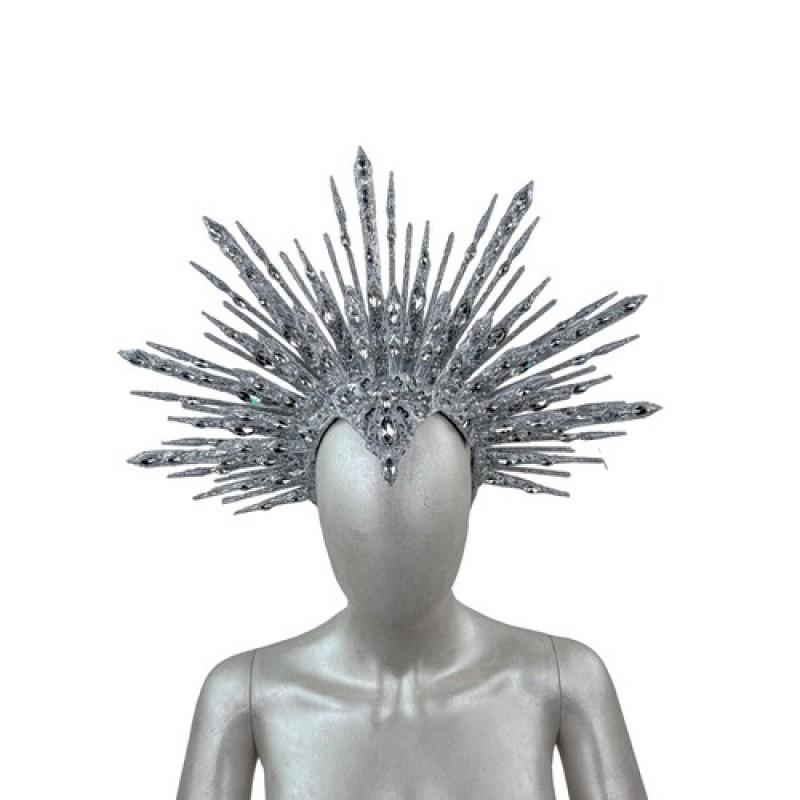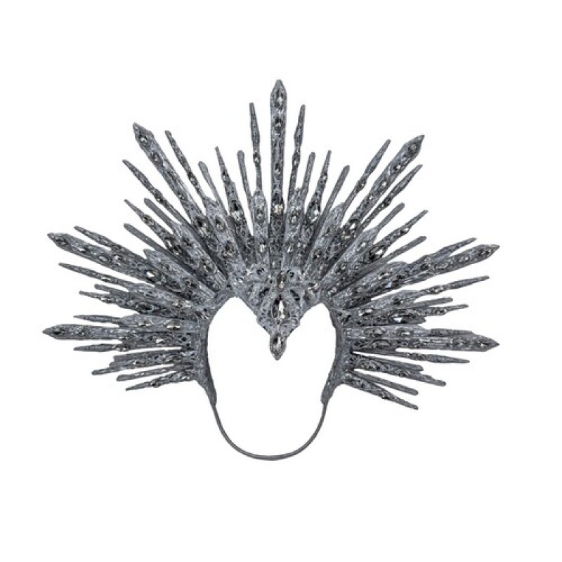 Розкішний головний убір ручної роботи, декорований безліччю сяючих променів, інструктованих блискучим камінням, що створює ефект крижаного сяйва.