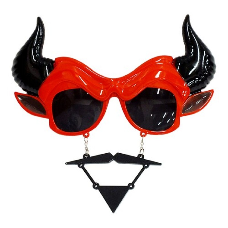 Забавні карнавальні окуляри з ріжками, підвісними вусиками і борідкою для біса або Диявола.