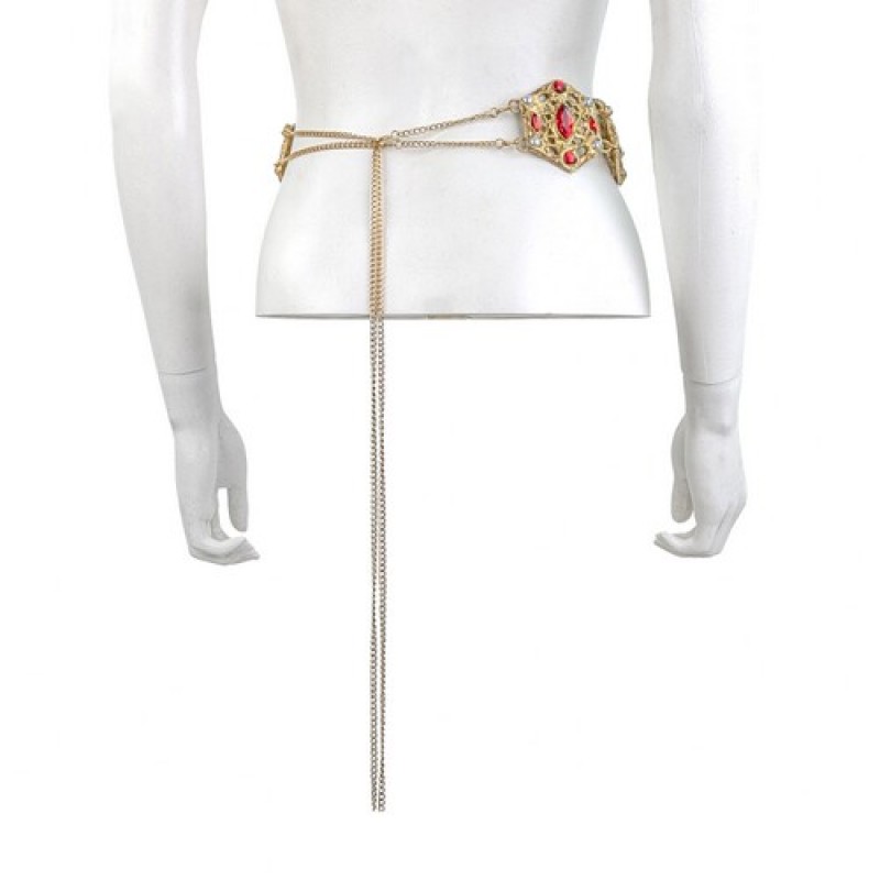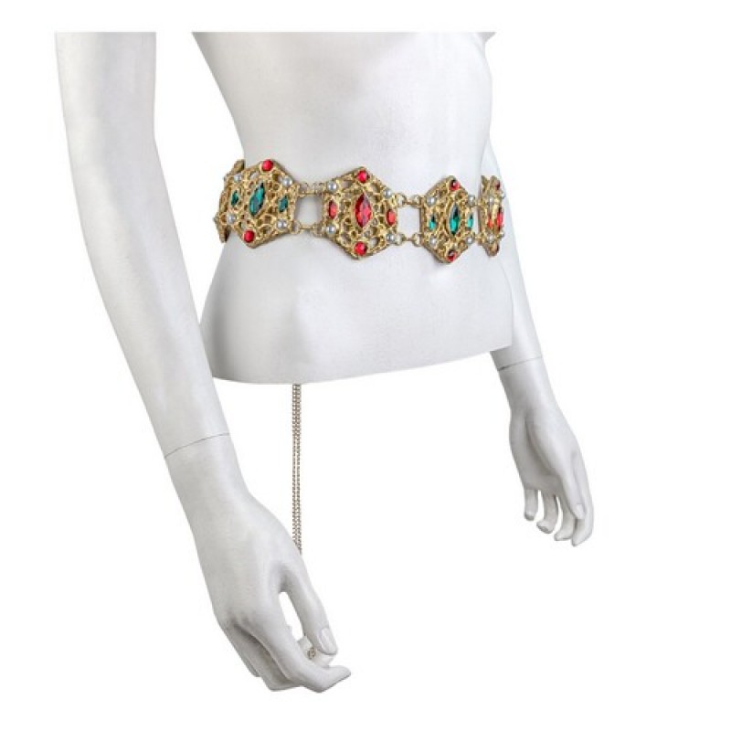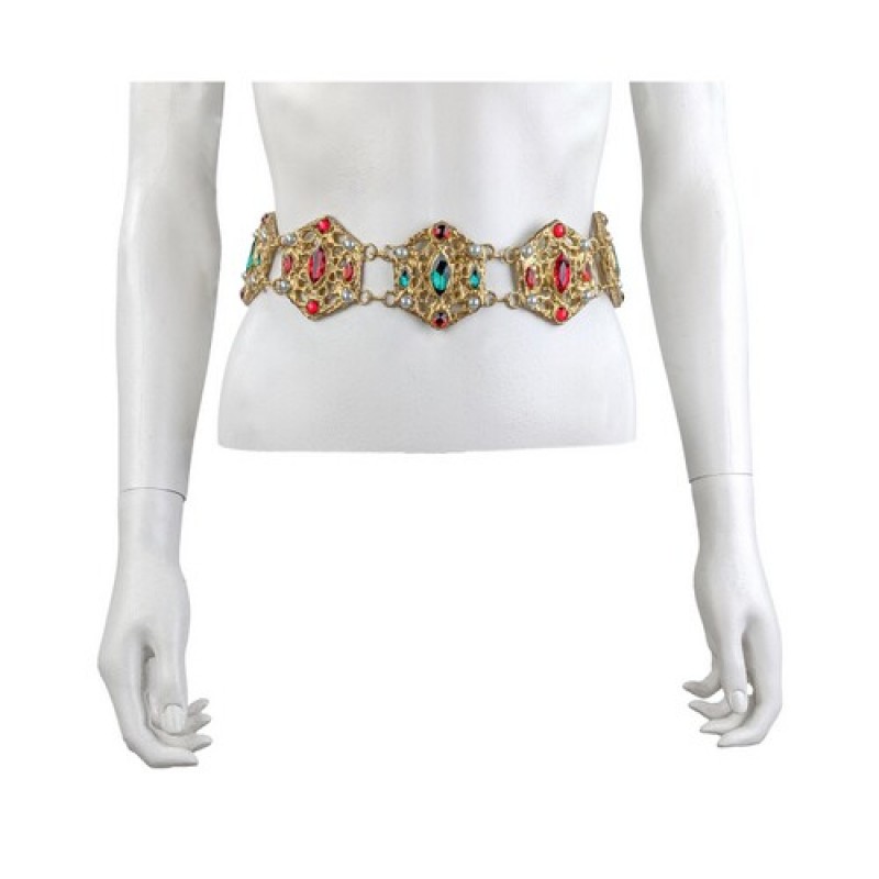 Неймовірний пасок ручної роботи, декорований червоним та смарагдовим камінням і ніжними перлинками.