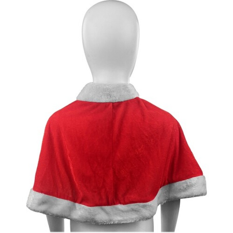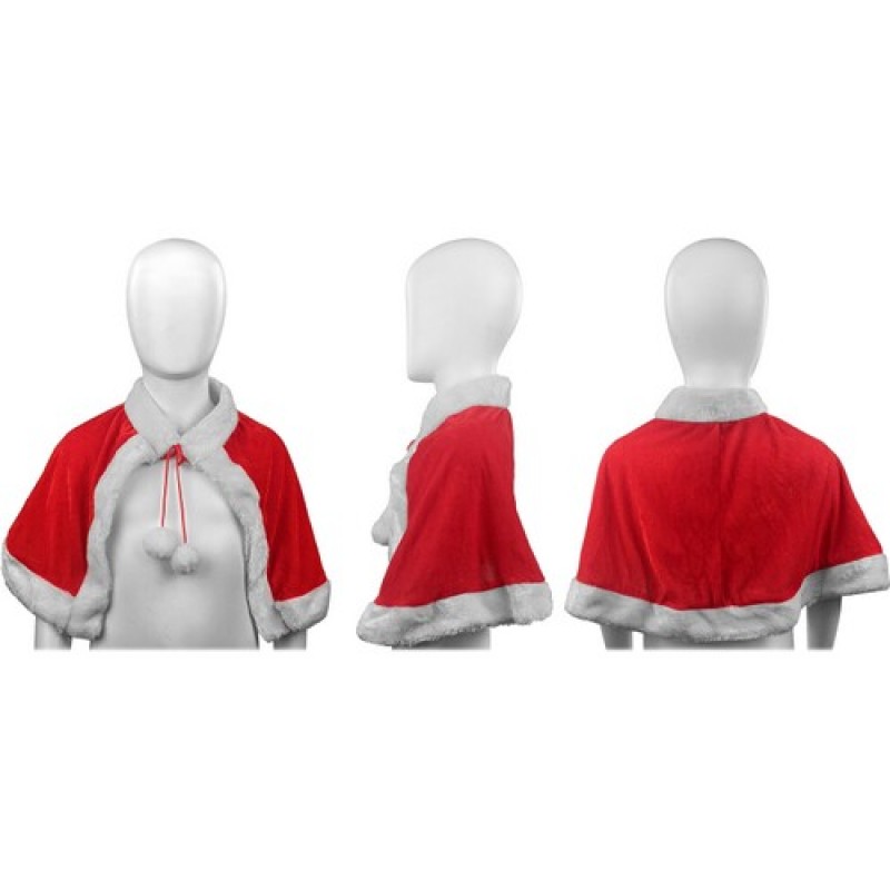 Червоно-біла накидка на плечі на зав'язках з бубонами - елемент новорічного карнавального костюма.
