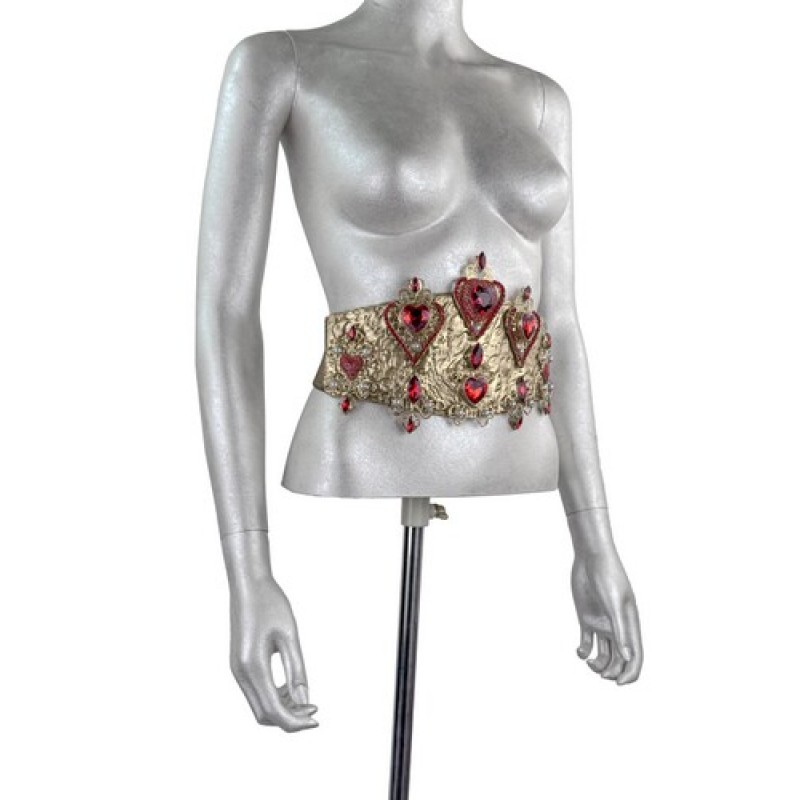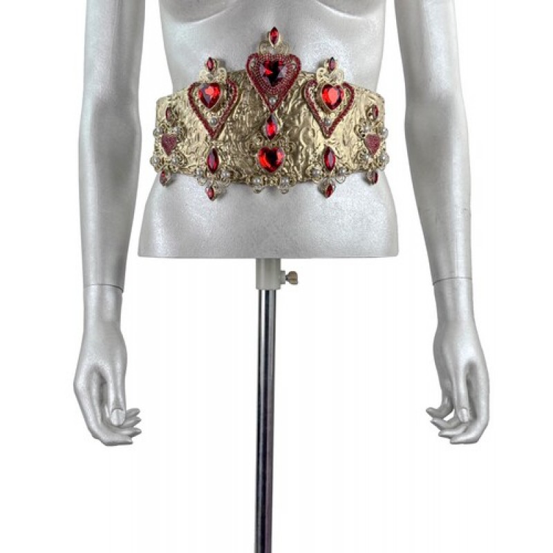 Пояс - корсет, декорований металевими деталями, ніжними перлинками та червоним камінням у формі сердець.