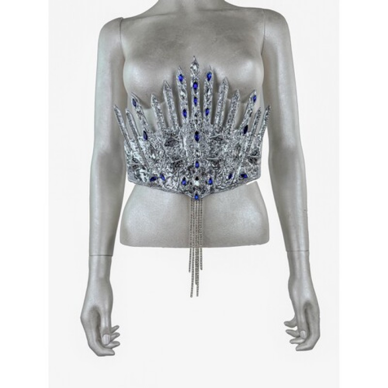 Пояс - корсет, декорований срібними стрілами, ажурними вензелями та безліччю блискучих камінчиків.