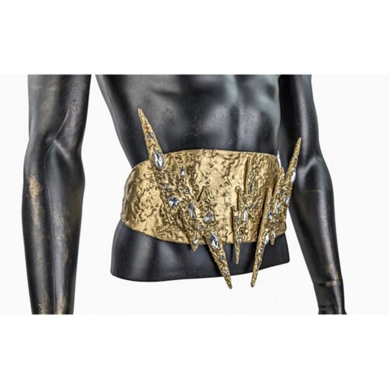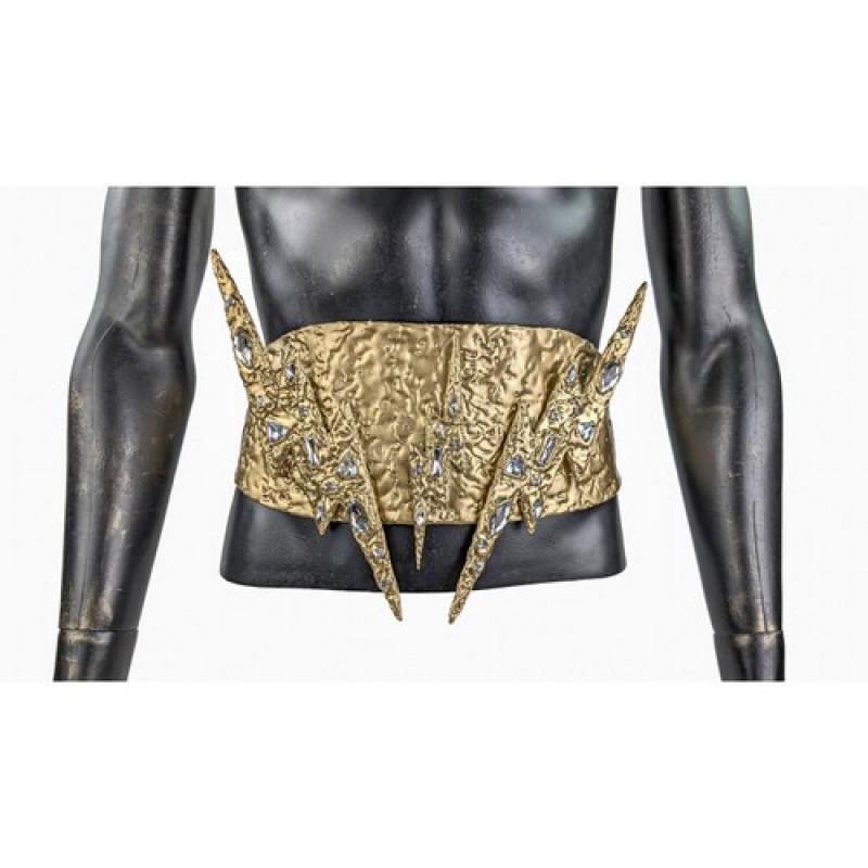Широкий золотистий пояс декорований деталями у вигляді блискавок та блискучим камінням.