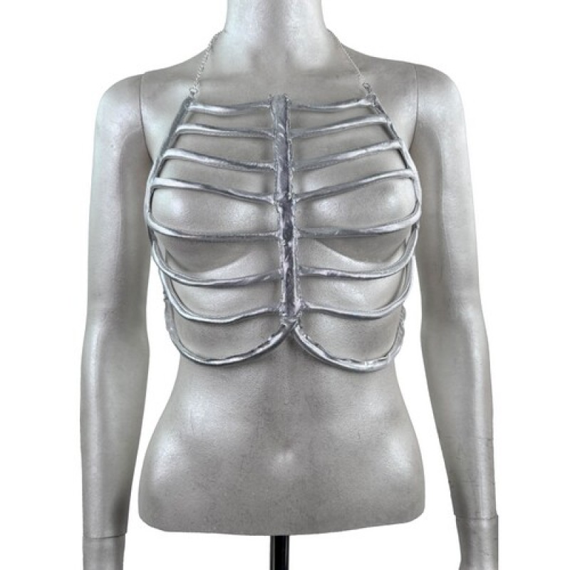 Декоративний топ-портупея, натхненний формою ребер, підкреслює силует та створює сміливий образ.