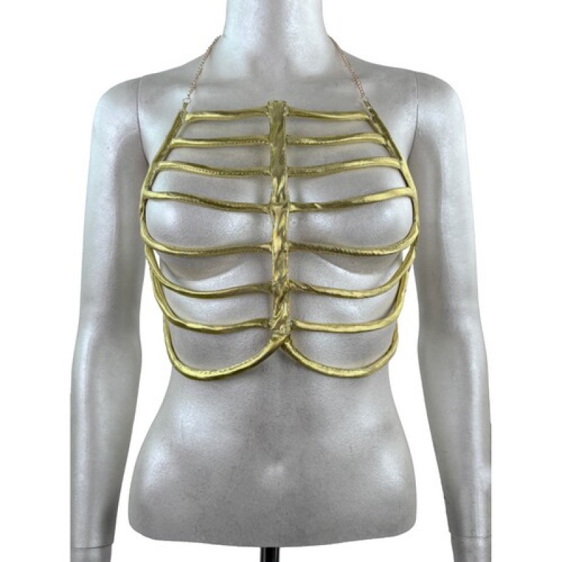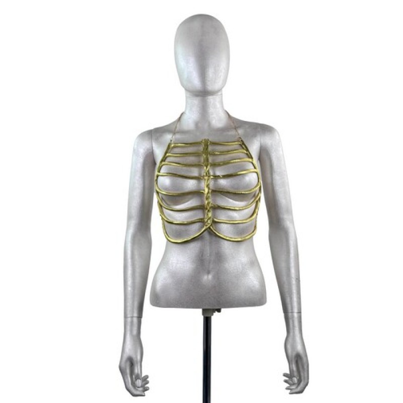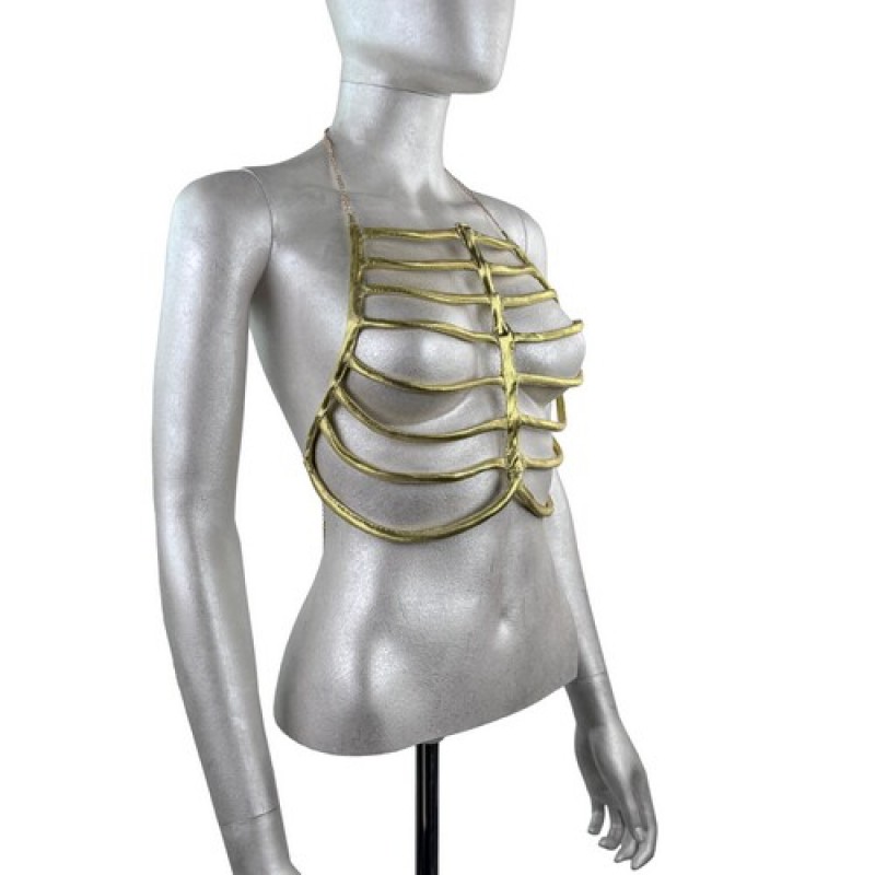 Декоративний топ-портупея, натхненний формою ребер, підкреслює силует та створює сміливий образ.