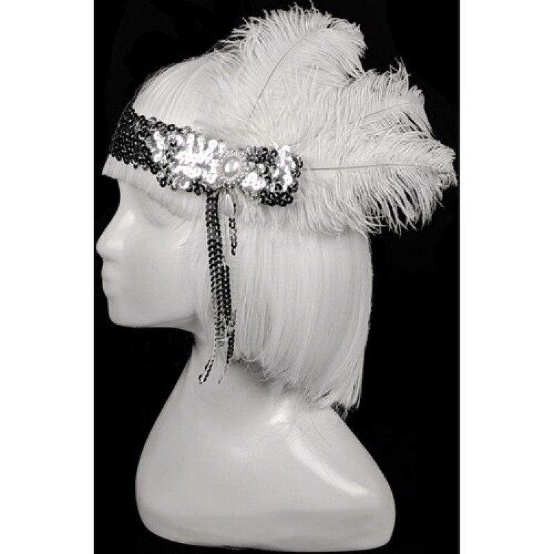 Безрозмірна ретро-резинка, пов'язка на голову з паєтками та оригінальним декором у стилі минулого століття.