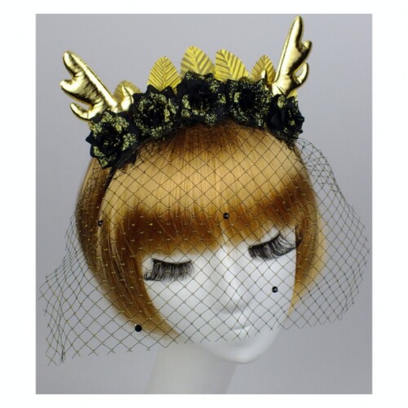 Стильний новорічний аксесуар з милими золотими ріжками оленяти та вуаллю.