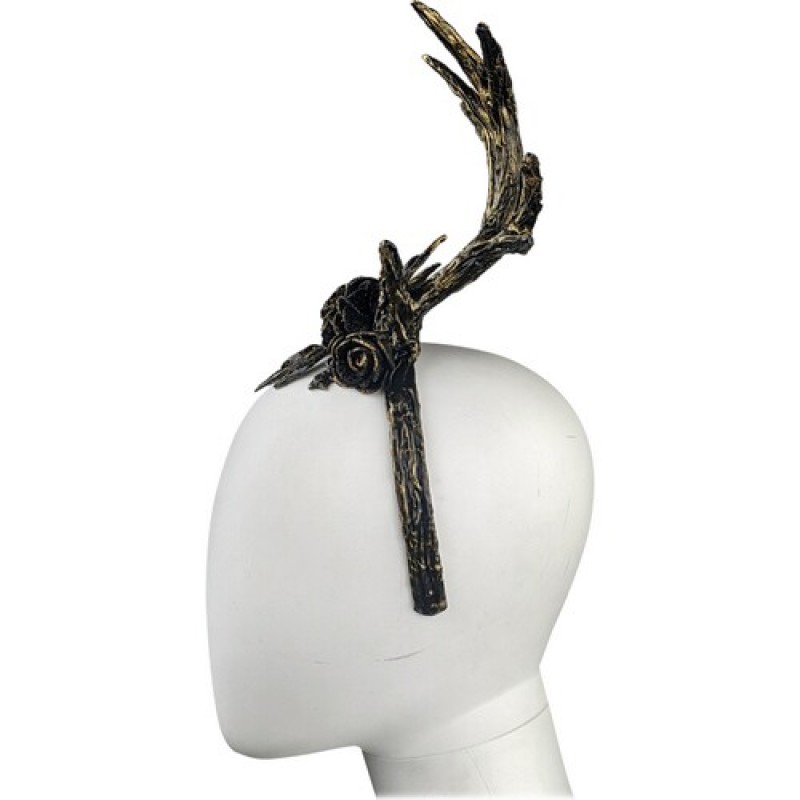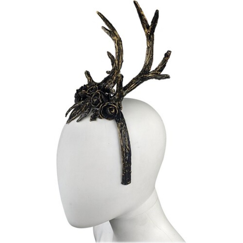 Карнавальний обруч, прикрашений рогами оленя, блискучими чорними трояндами, для новорічних вечірок.