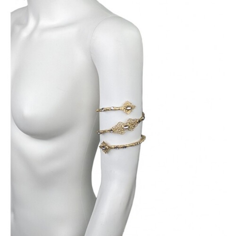 Оригинальный браслет, украшенный блестящими золотистыми вензелями и камнями.