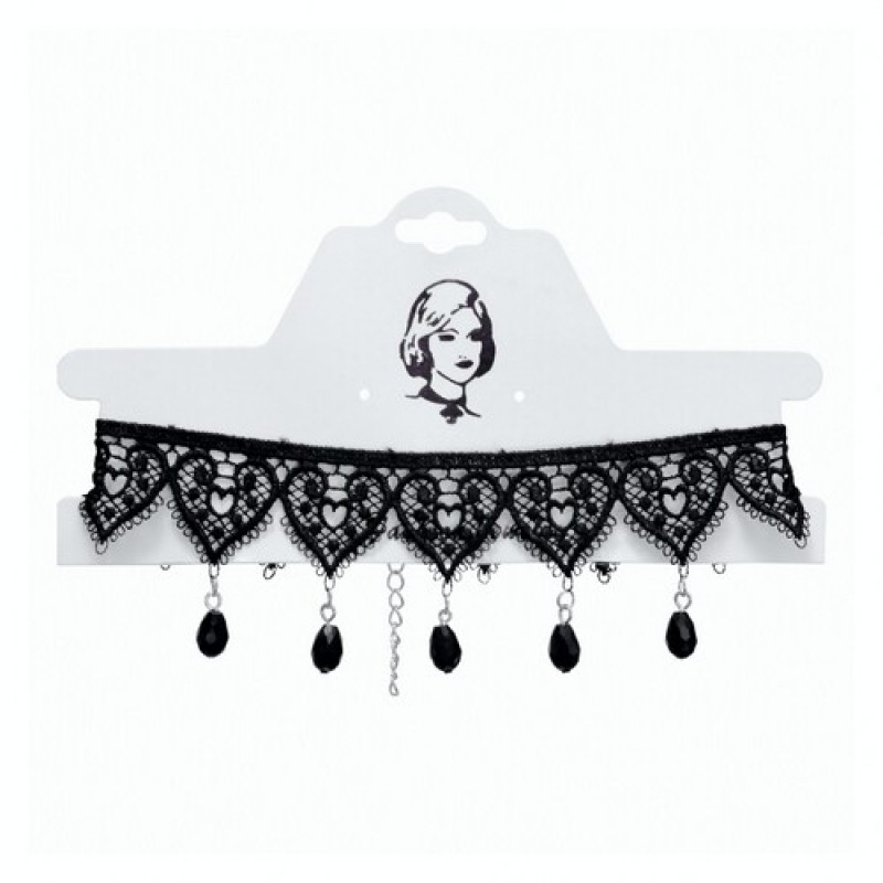 Готичный, но в то же время нежный чокер дополнит Ваш карнавальный образ. Выполнен из прочного вязанного кружева, украшен черными пластиковыми камушками.