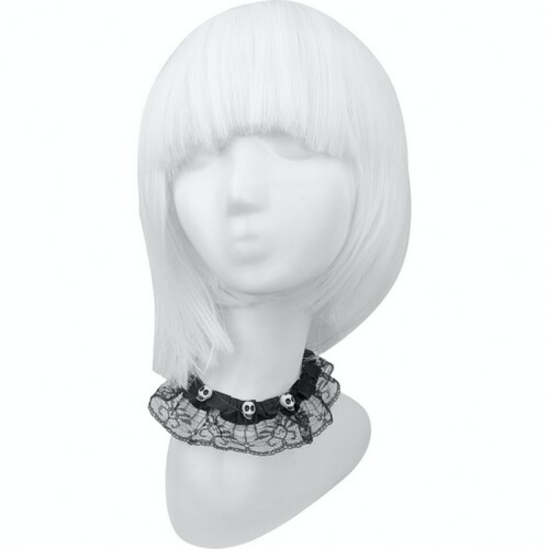 Оригинальный чокер, декорированный кружевом и маленькими черепками, на атласной ленте (на липучке), поможет создать неповторимый образ для фотосессии, готической вечеринки, а также станет прекрасным дополнением к карнавальному костюму на Halloween (Хэллоуин).