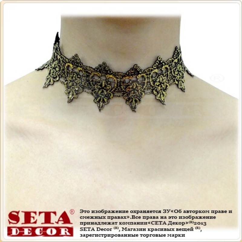 Ажурный двусторонний золотисто-чёрный чокер 2 в 1.