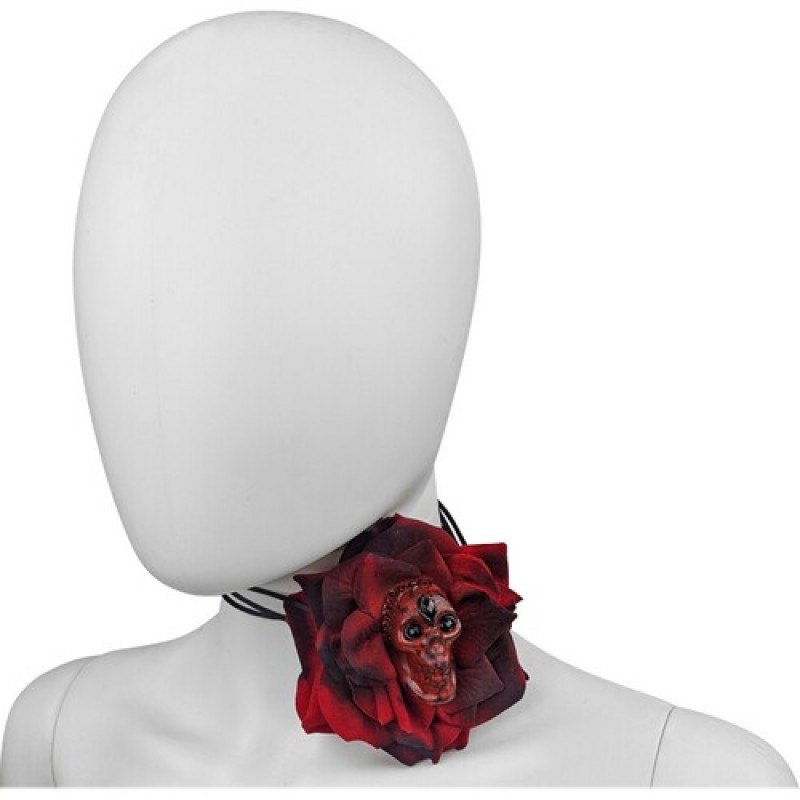Оригинальный чокер, декорирован бархатной розой c черепом, на шнурке, станет прекрасным дополнением готического образа.