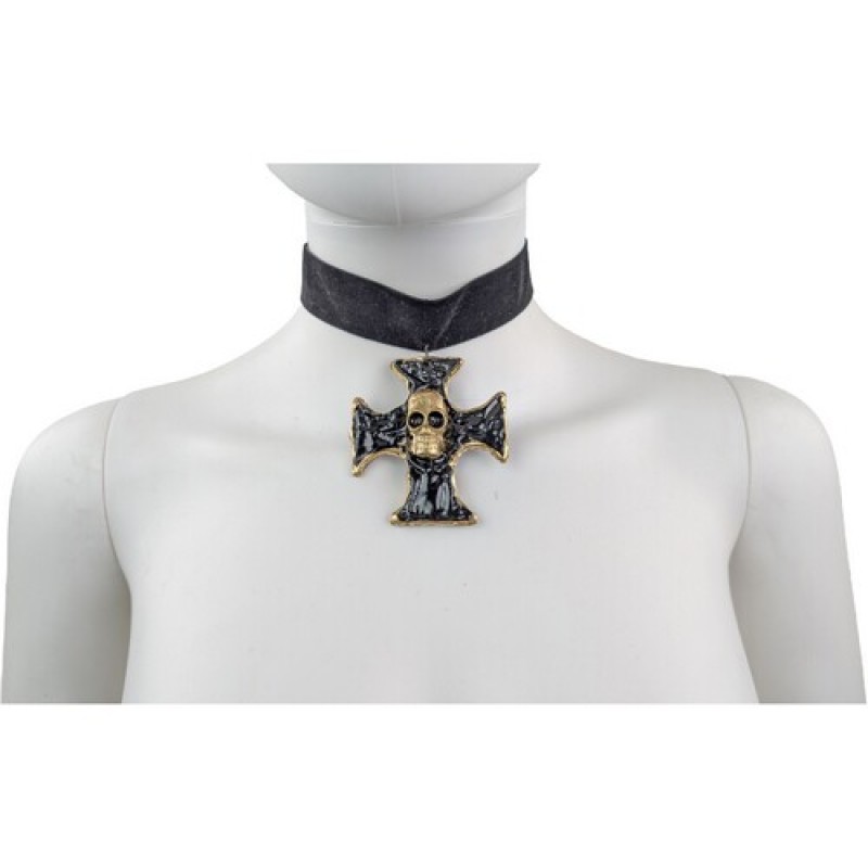 Аксессуар в виде большого креста с черепом на бархатной ленте, прекрасный аксессуар для дополнения готического образа.