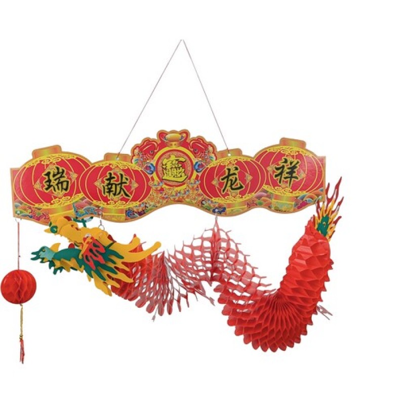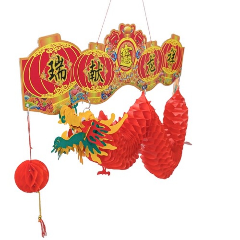Подвесной бумажный декор (китайский дракон страны Восходящего солнца) с иероглифами для декора помещений, Китайского Нового года.