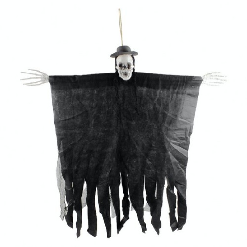 Оригинальный декор на Хэллоуин в виде подвесного скелета (тыква или череп) с гибкими руками и костлявыми ладонями. Это привидение будет хорошо смотреться в помещении как с высоким, так и с низким потолком.