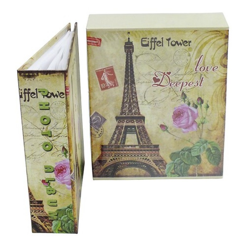 Стильный фотоальбом в чехле из плотного картона с изображением Парижа. В альбом можно поместить 40 фотографий форматом 10х15 см.
