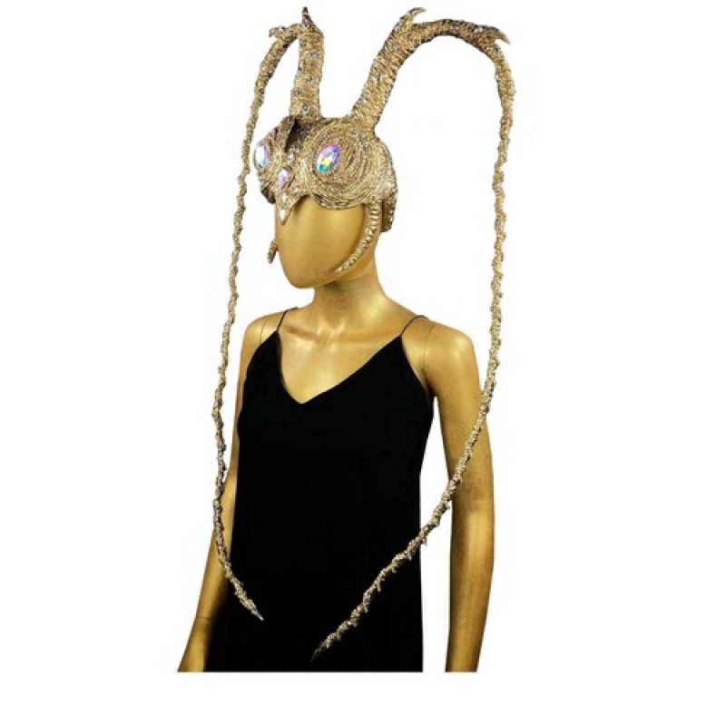 Эпатажный головной убор унисекс золотого цвета, декорирован камнями и стразовой лентой хамелеон, создающий образ пчелы, мухи, жука, комара или другого насекомого. Время изготовления 2-3 рабочих дня.