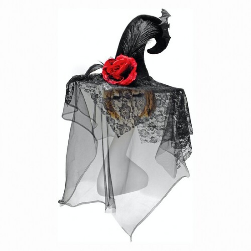 Шляпа с широкими полями и вуалью на Хэллоуин (Хеллоуин, Halloween) для каранвальных образов: ведьма, колдунья, Баба Яга, чародейка.