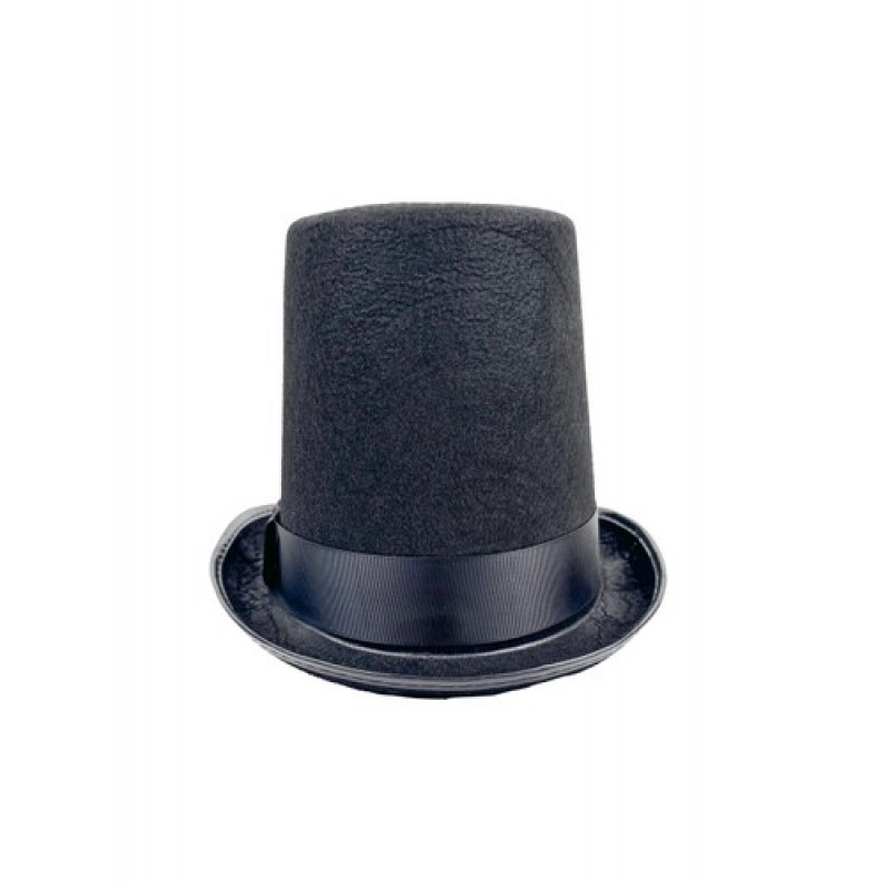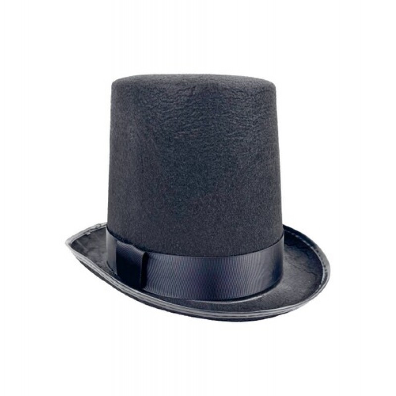 Высокий черный цилиндр с атласной лентой.